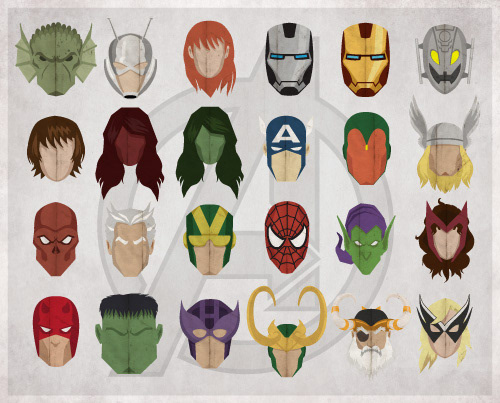 I was asked to create 24 head shots of marvel characters that were in some way intertwined with The Avengers at some point in their history. You can see the interactive family tree feature in issue #5 of Project magazine.