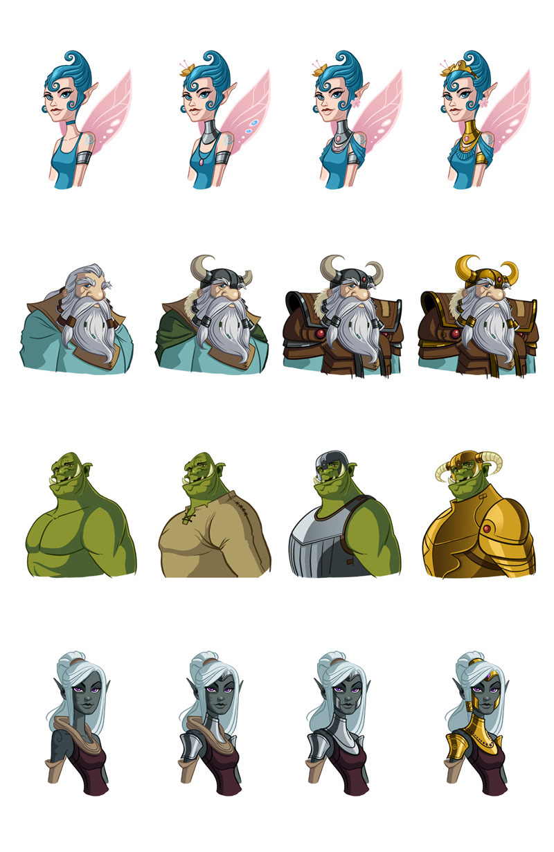 Fantasy player character avatars created for Phantom EFX and their Reel Deal slot release titled "Enchanted Realms"