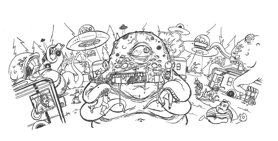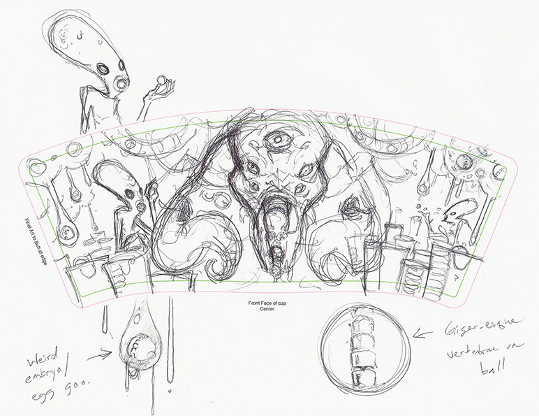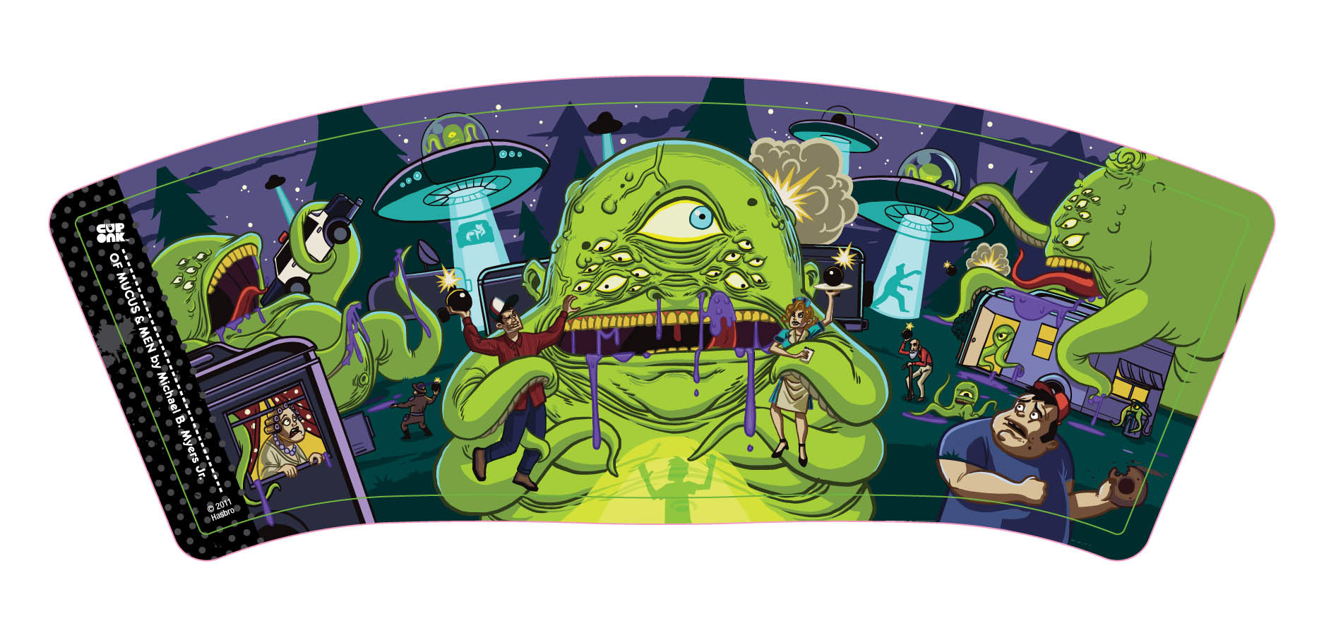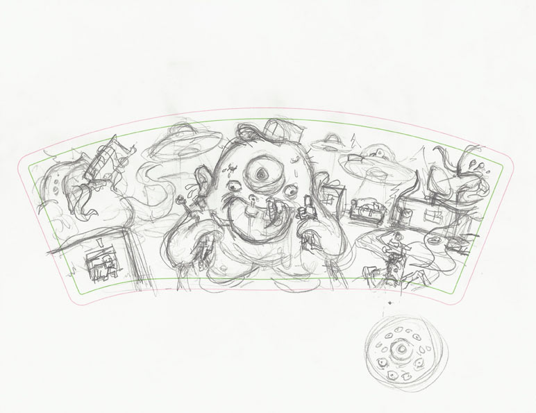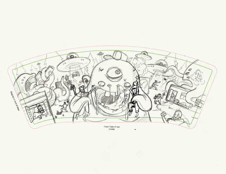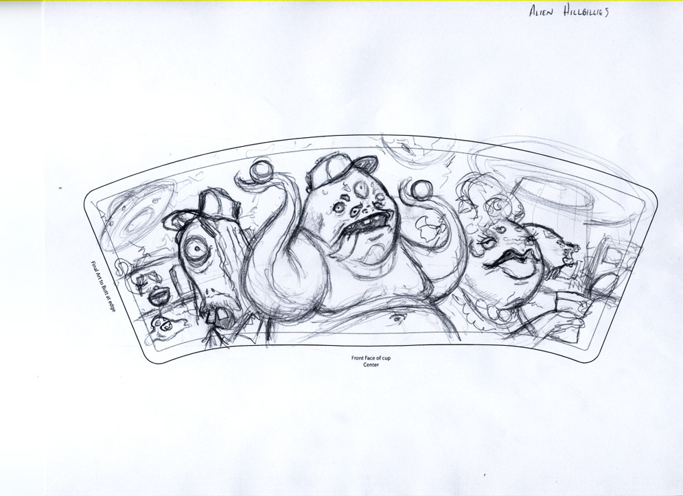 I had the pleasure of working on a Cuponk cup design a couple of years ago for Hasbro. The design was never released, but I had a blast working on it. I've included in progress sketches and work from the project. It was art directed by Drew Dougherty. You can learn more about the product here: http://www.hasbro.com/games/en_US/cuponk/